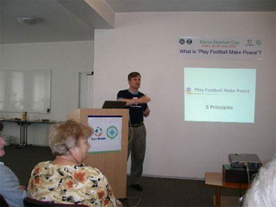 At first it may seem that education about peace should start with discussions about geopolitics, national, ethnic and religious divisions, but the PFMP educational program starts with principles which deal with player behavior on & off the pitch. Football behaviors and attitudes begin with the game, but can be taken off the pitch and become part of everyday life. In this way football can teach about peace and self mastery. Peace begins within each person. Football is a great vehicle to teach this.