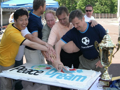 A highlight of the tournament was the cutting of the tournament cake. In 2007, the Summer Cup started the tradition of the “peace cake.” This was decided to be a symbol of youth footballers sharing in peace. In 2008 the cake was the largest ever made in Estonia. It is known as the Peace Dream cake. The cake helps to focus the event on its overall theme. The cake was divided up between all the participating teams and they also received certificates of participation and gifts from sponsors. PFMP handed out a DVD which had a film about the purpose of the program and The Way of Champions presentation.